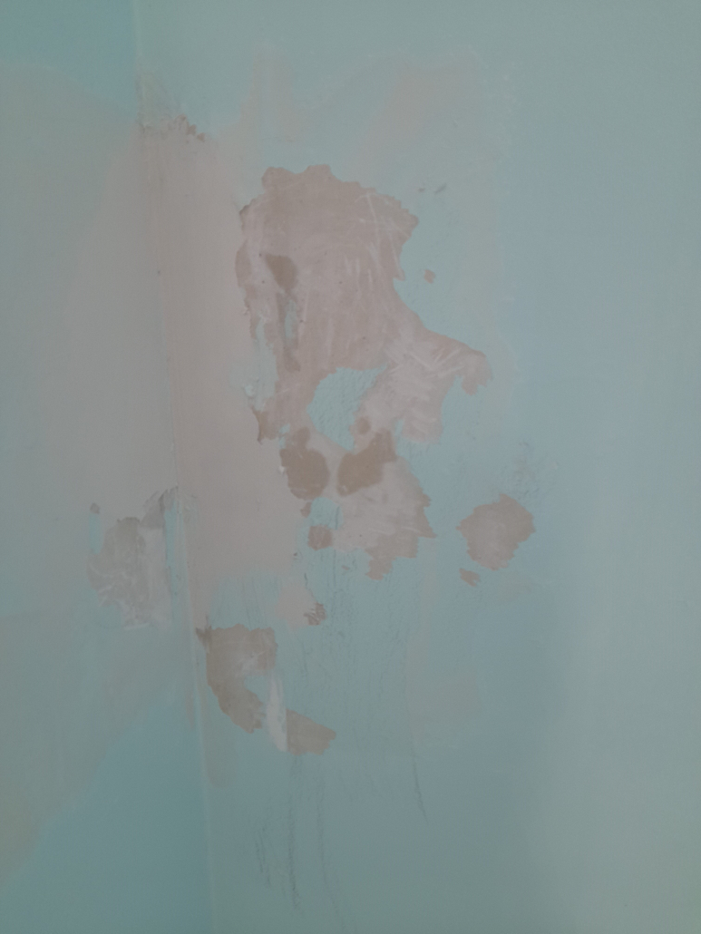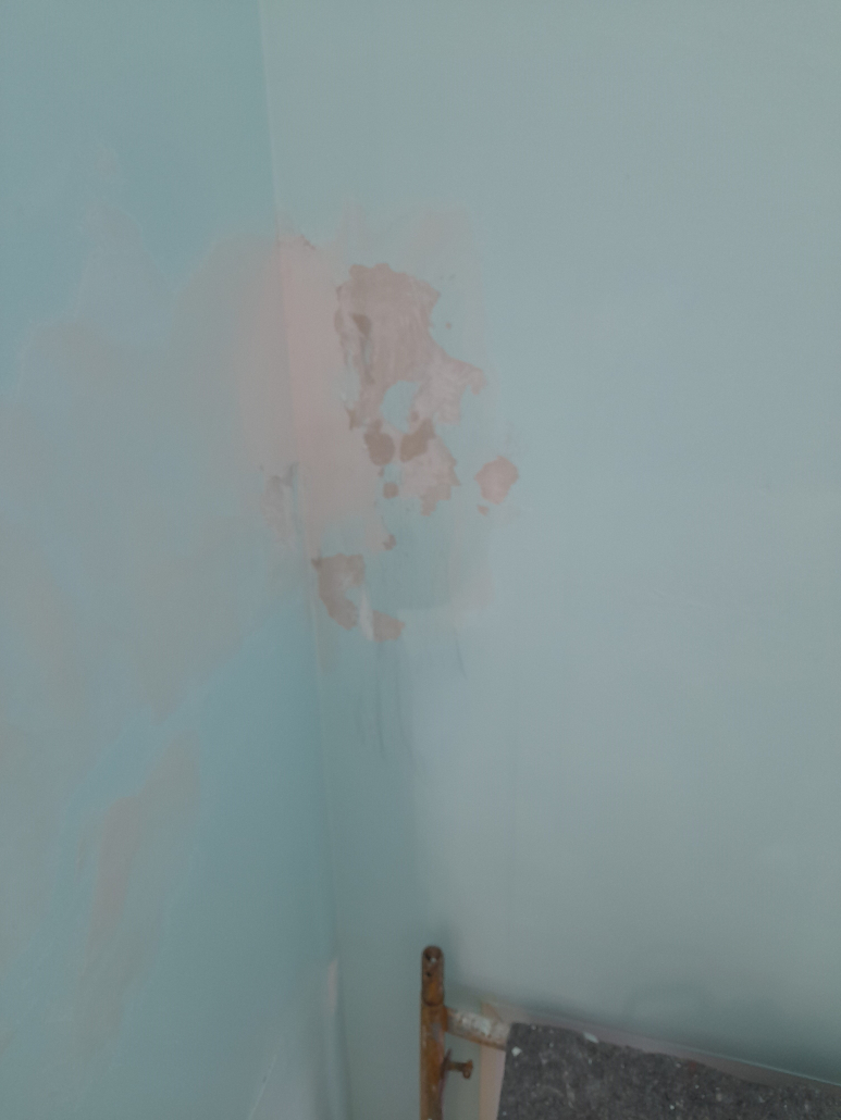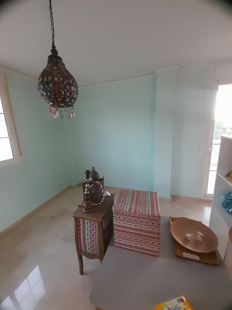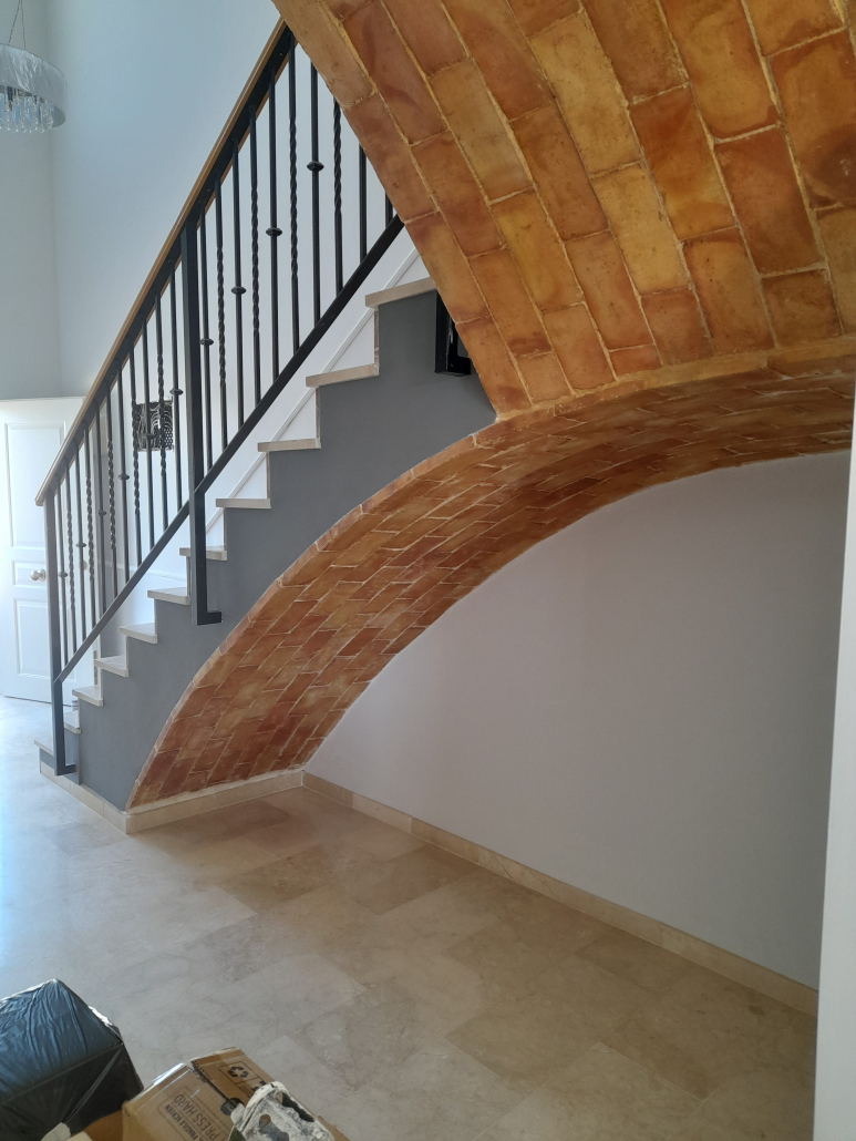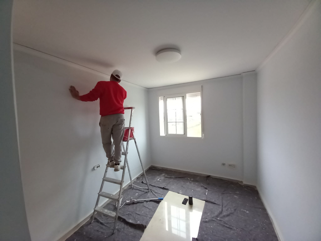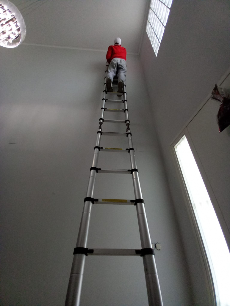 Pintura interior con cambio de decoración, aplicación de masilla de renovación Sika, Montaje andamio de dos modulos por la altura de la entrada del chalet. El resultado salta a la vista.