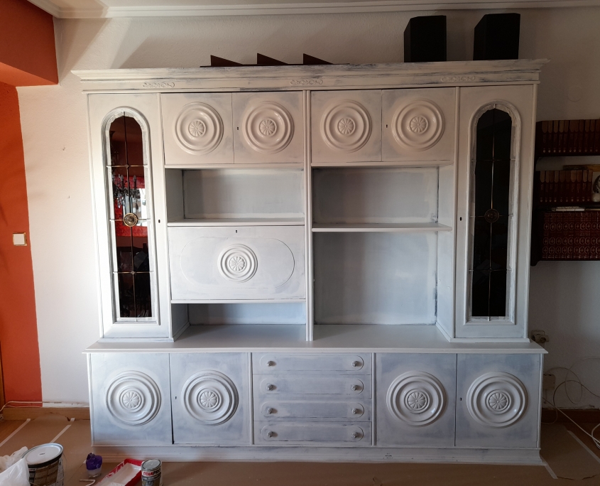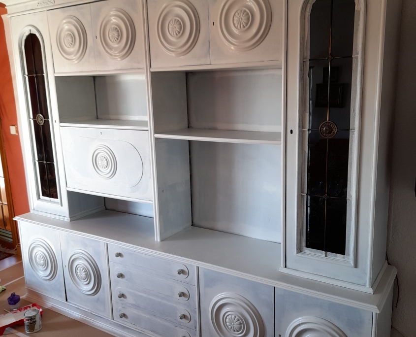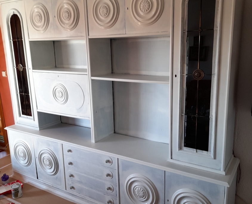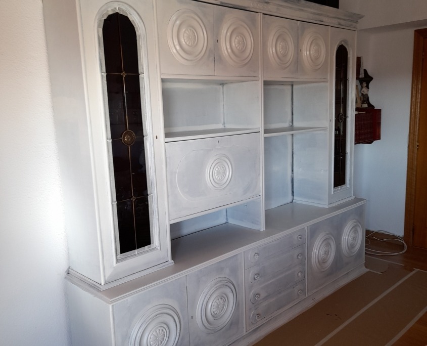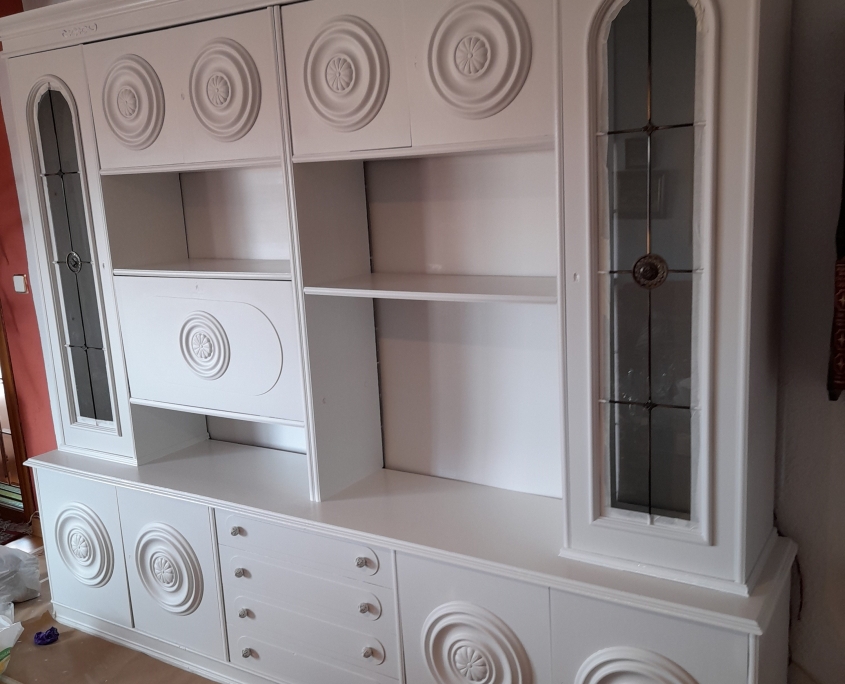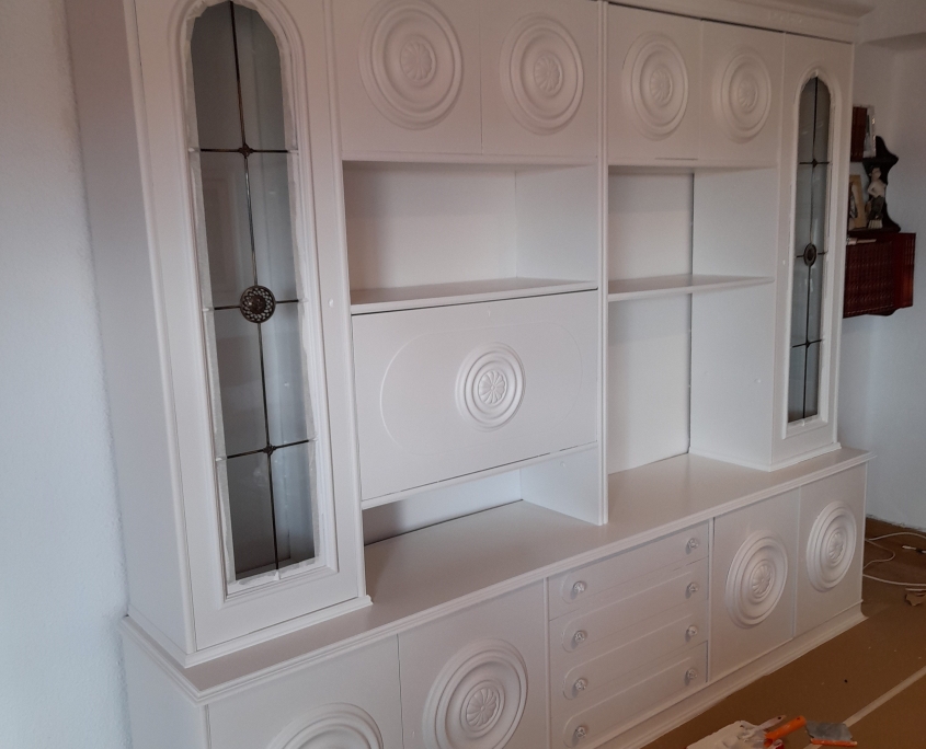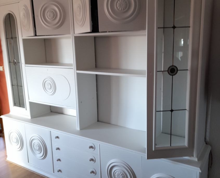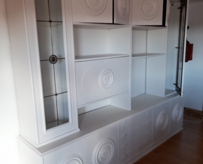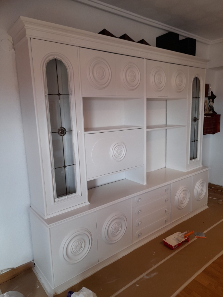 Armario antiguo que la familia quería restaurar, aplicamos imprimación y 2 buenas manos de esmalte, el resultado salta a la vista, armario como nuevo.
