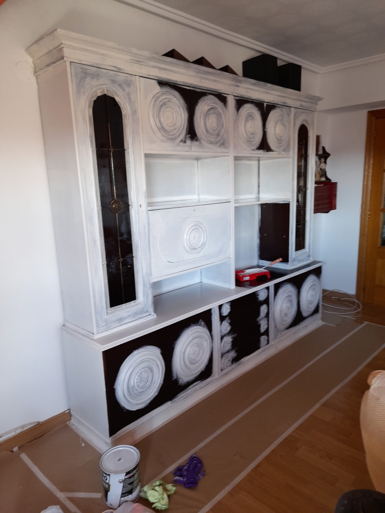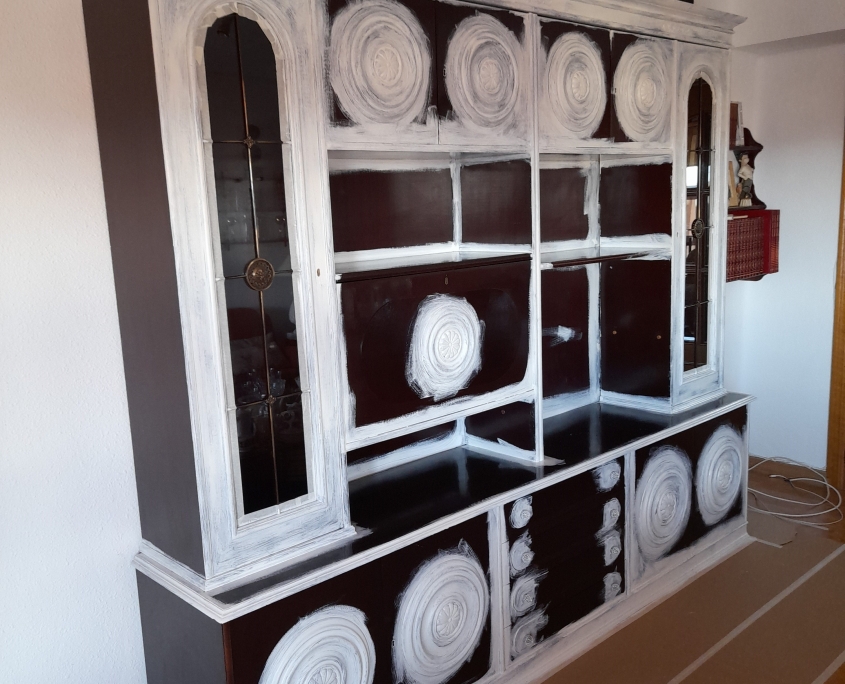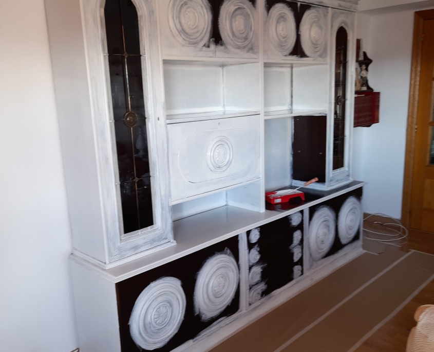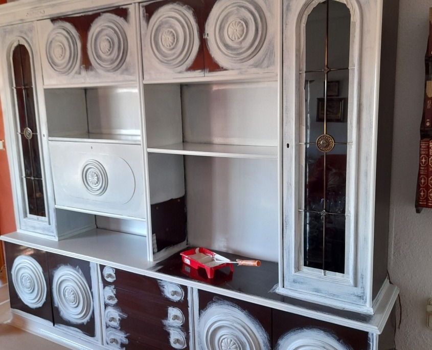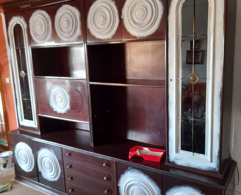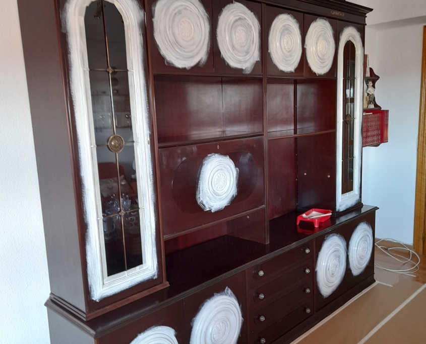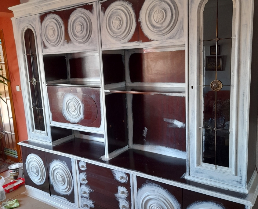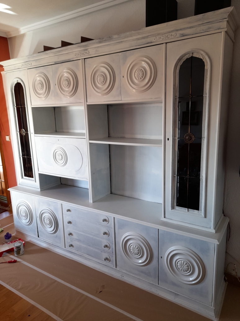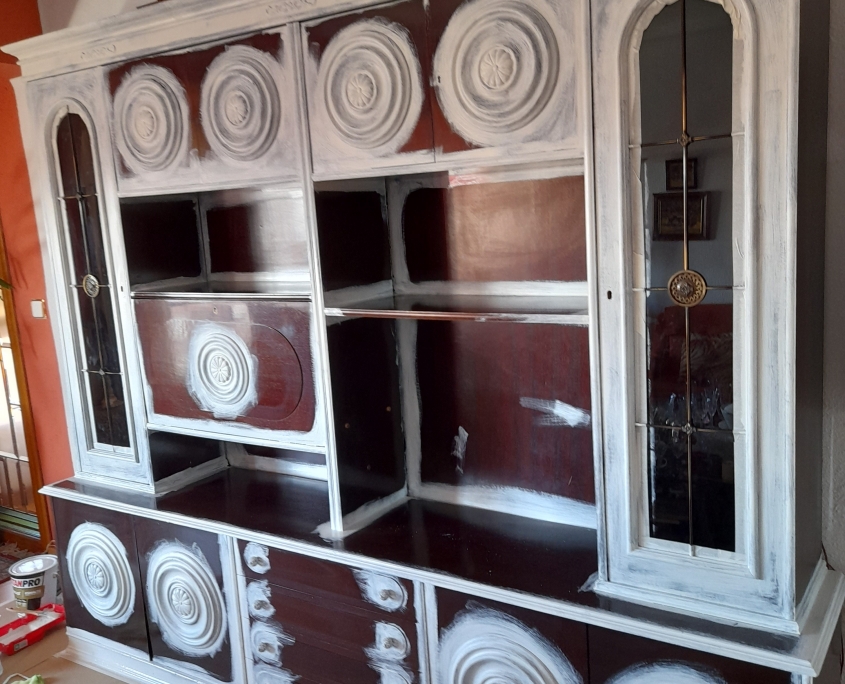 Armario antiguo que la familia quería restaurar, aplicamos imprimación y 2 buenas manos de esmalte, el resultado salta a la vista, armario como nuevo.