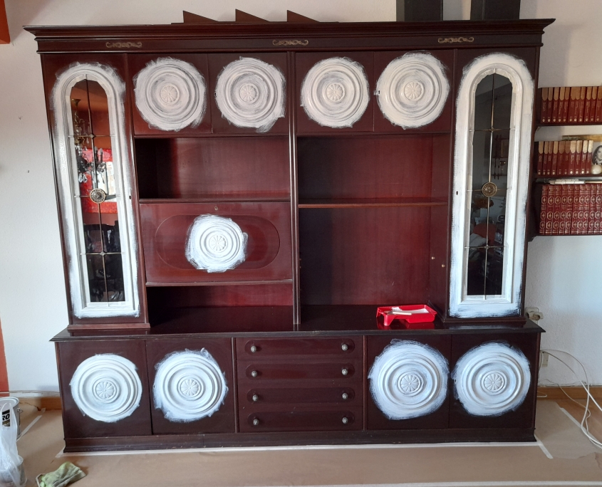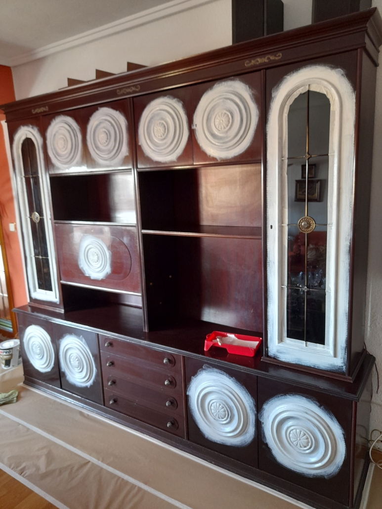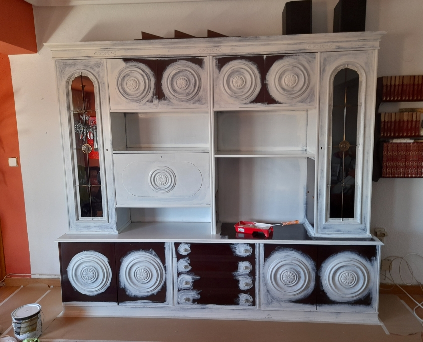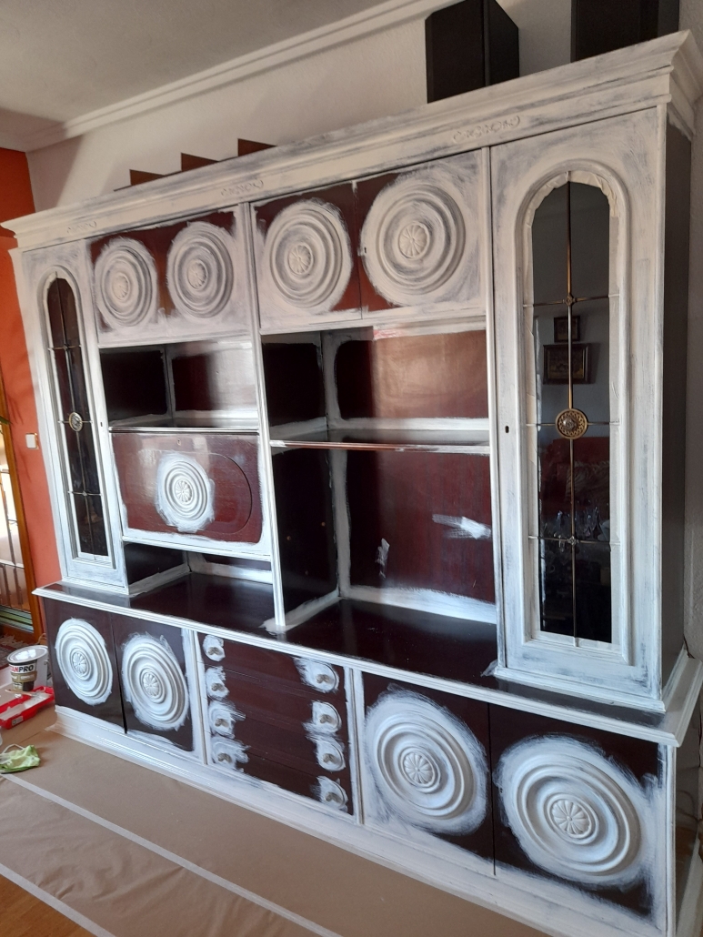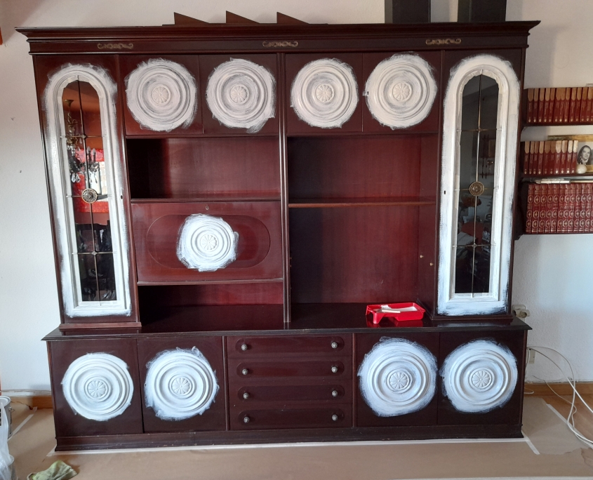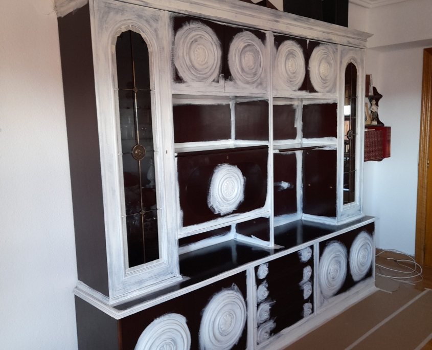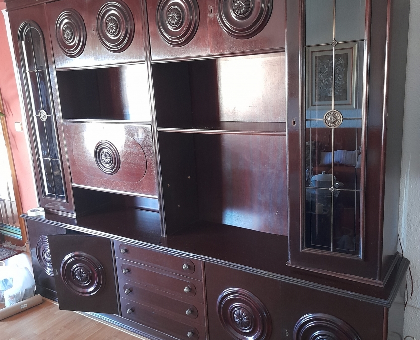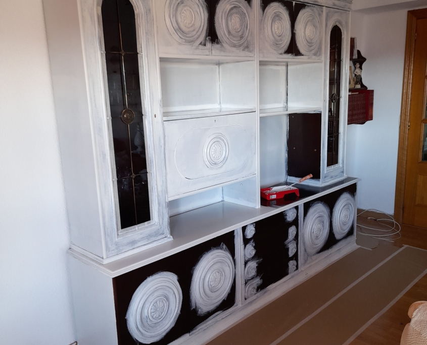 Armario antiguo que la familia quería restaurar, aplicamos imprimación y 2 buenas manos de esmalte, el resultado salta a la vista, armario como nuevo.