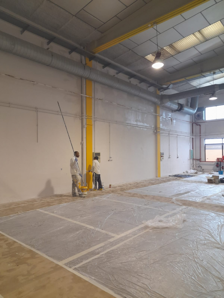 Pintura de interiores con equipo Airless Graco y reparaciones con masilla.