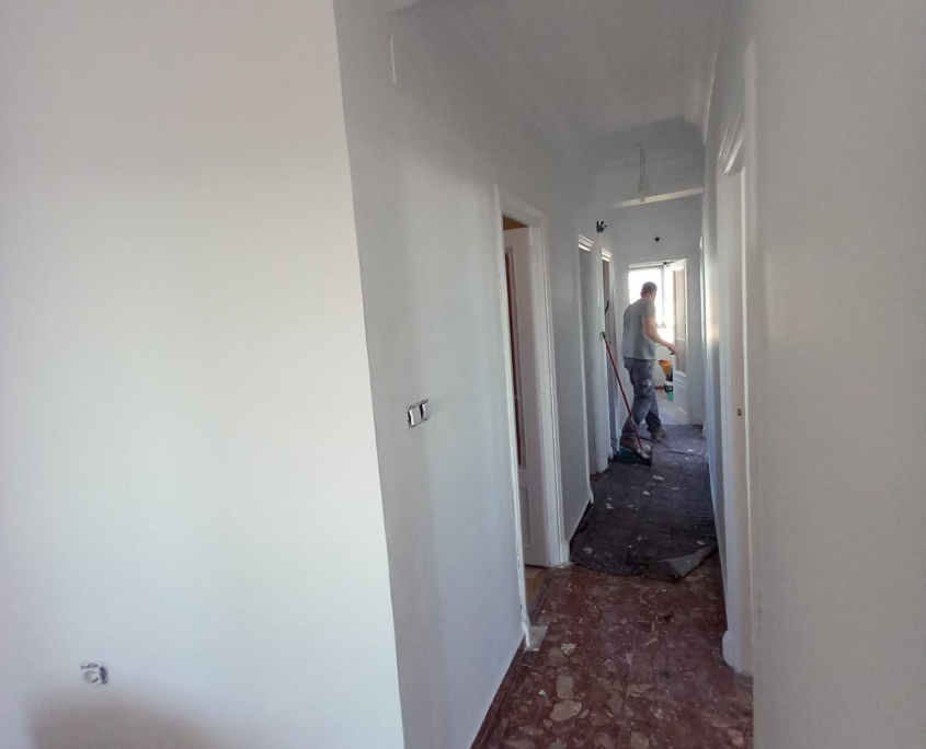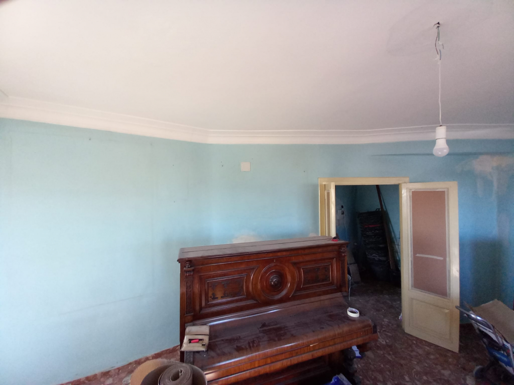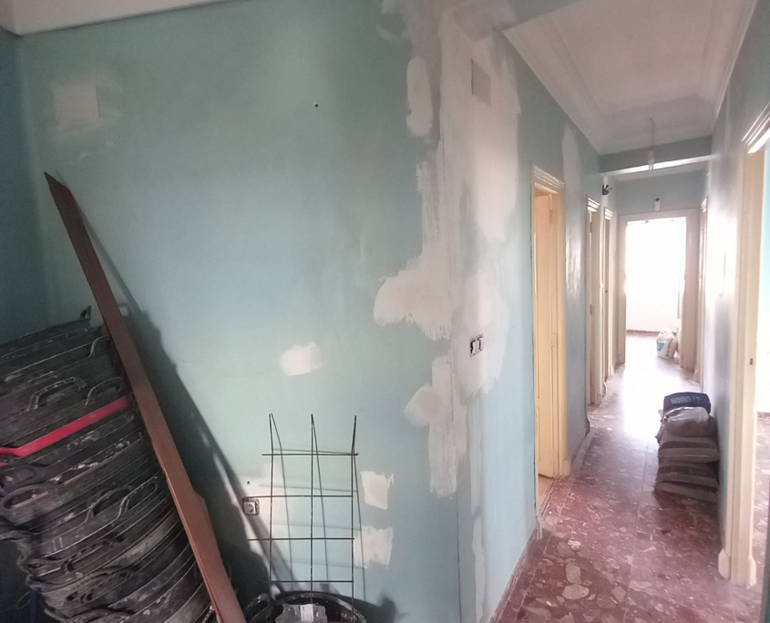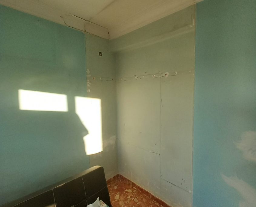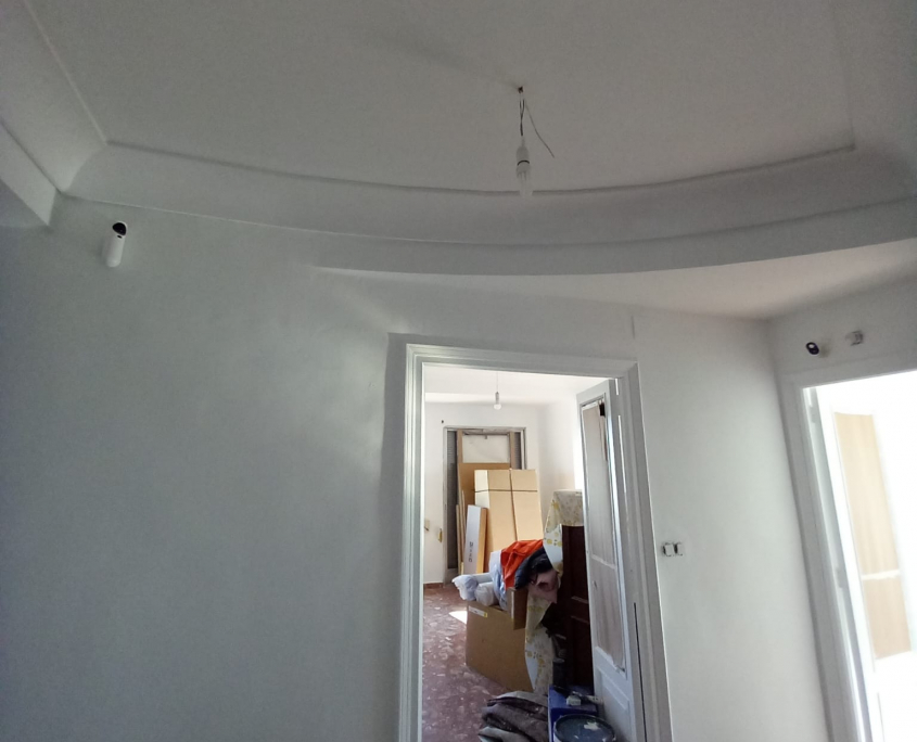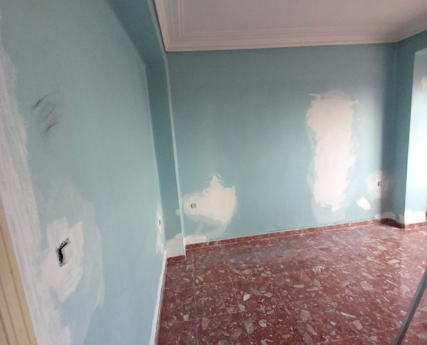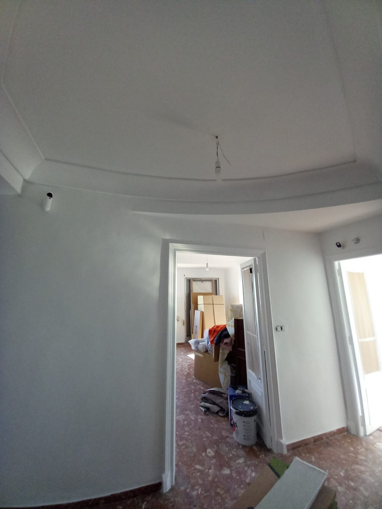 Paredes y techos muy deteriorados por el paso del tiempo. Trabajo y reparaciones con yeso, masilla y 3manos de blanco para un resultado optimo.