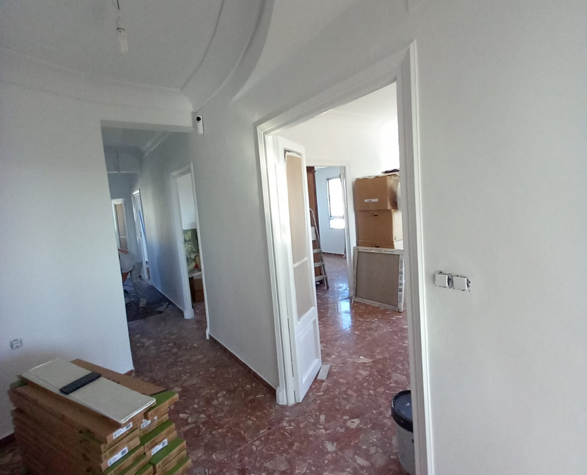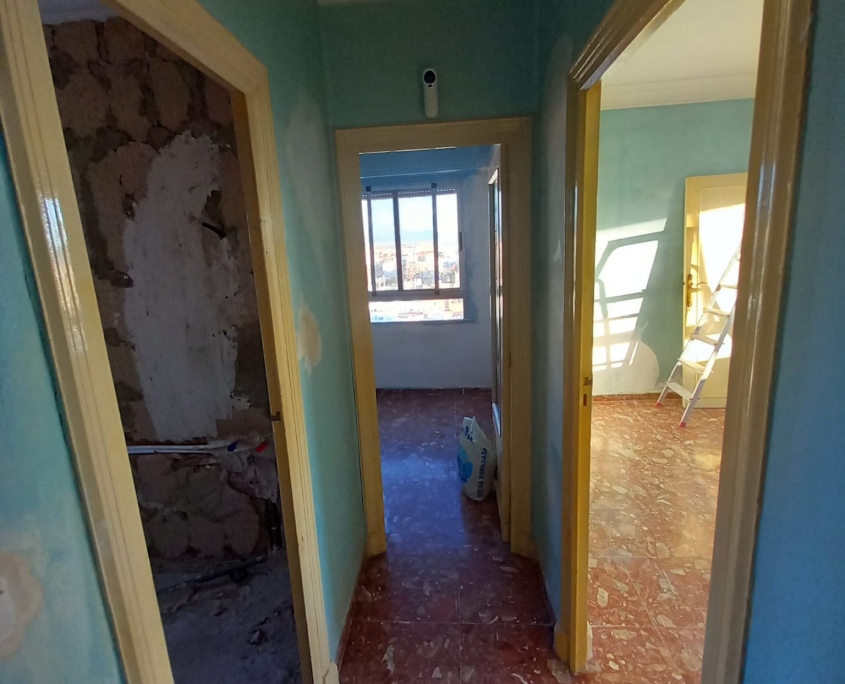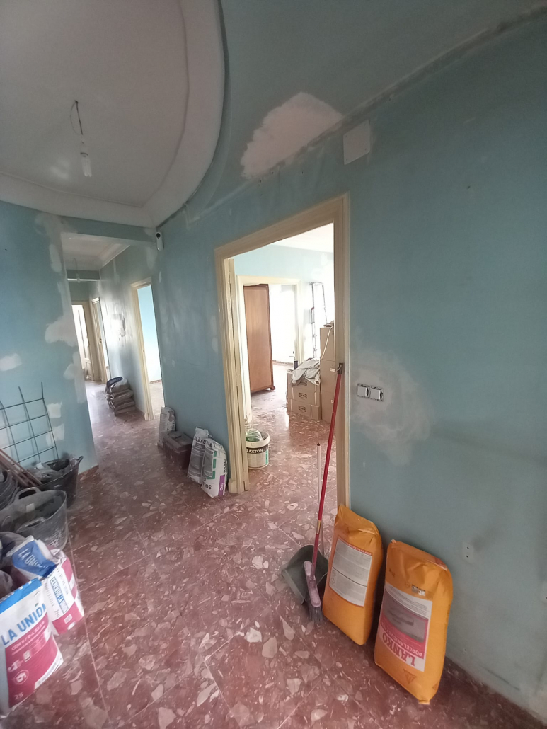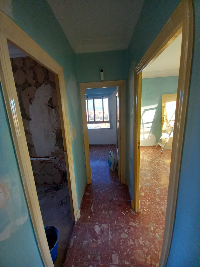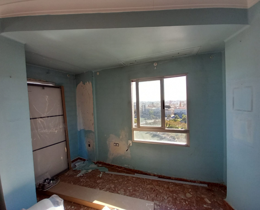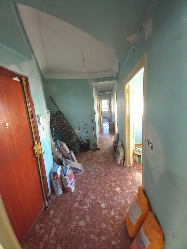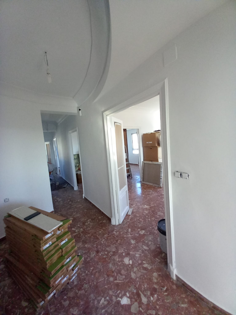 Paredes y techos muy deteriorados por el paso del tiempo. Trabajo y reparaciones con yeso, masilla y 3manos de blanco para un resultado optimo.